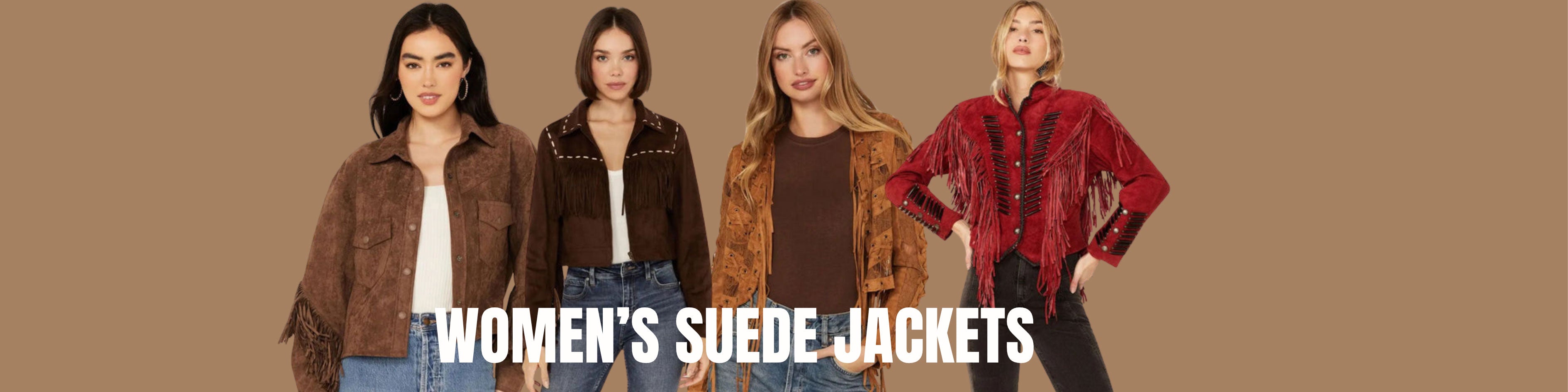 Elevate your wardrobe with our Women's Suede Jackets, crafted for effortless style and comfort. Soft, supple suede in a range of colors and cuts makes these jackets perfect for layering over casual outfits or dressing up your look. Subtle details like stitching, buttons, and sleek silhouettes add a touch of charm while keeping the focus on modern, wearable design.